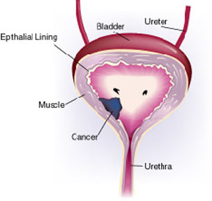 يعرف سرطان المثانة بانه ورم سرطانى خبيث يحدث بالمثانة البولية للانسان ولكن تختلف نسبة حدوثه بين الرجل والمرأة حيث ان نسبة الحدوث تزيد ثلاثة اضعاف عند الرجال عن النساء ,وسرطان المثانة اكثر حدوثا عند الاشخاص الذين تجاوزوا سن الخمسين,ويرجع نسبة الحدوث العالية فى الرجال بسبب التدخين حيث ان نسبة الرجال المدخنين اكثر من نسبة النساء والتدخين له دور فعال فى الاصابة بهذا المرض.الاعراض